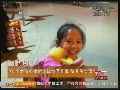 女孩街邊跪地寫作業 陪爺爺賣面包