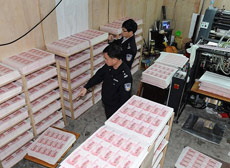 七旬老人手繪假幣膠版