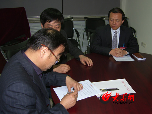 青島副市長王書堅(右一)等待在調查結果上簽字