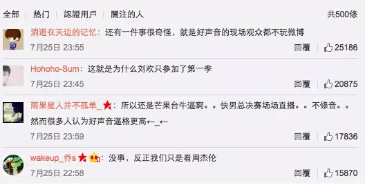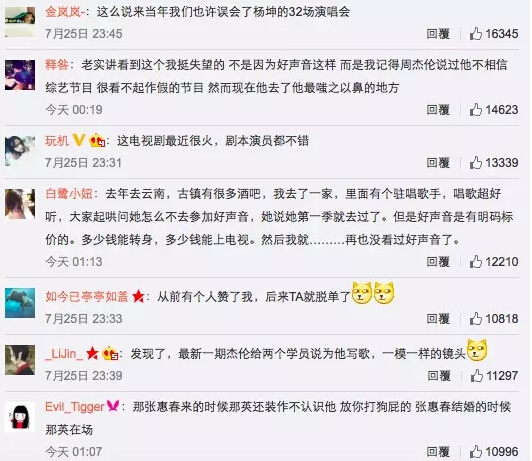 怪不得劉歡只當了一季評委就去中國好歌曲卷珠簾了,怪不得張惠妹只當了一季評委就跑去開演唱會了,另外三位那英、庾澄慶、汪峰都是至少參加了三季的老油條了,目測杰倫小公舉基本也只有這一季了。