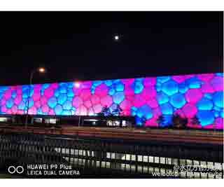 ▲秦凱求婚何姿成功后,日前,國(guó)家游泳中心水立方也為他們亮燈祝福,還特意拼出“QKHZ”和“I love U”的字樣(圖),場(chǎng)面十分浪漫。