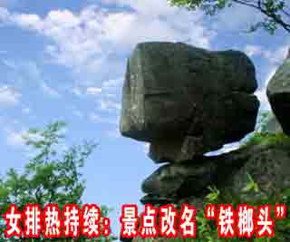 封面:女排熱持續!昨日,湖南岳陽市天岳幕阜山景區一致認為其招牌景點“頂天立地”(圖)與鐵榔頭高度形似,于是發文將景點改名為“鐵榔頭”,致敬女排和郎平精神。