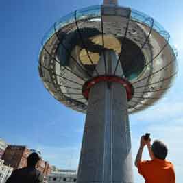 ▲“樓翹翹”:一個月前,英國海濱度假城市布賴頓“樹立”起全球最高的移動觀景臺。上周,這座高達162米的觀景臺被人包下舉辦私人派對,但當賓客全沖去酒吧喝酒時,卻導致觀景臺一側重力過大,失去平衡停止運轉。約200名賓客因此受困約兩小時。圖:觀景臺外型宛如一個甜甜圈掛在木棍上,可從高空俯瞰綿延42公里的海岸線景觀。(中新網)