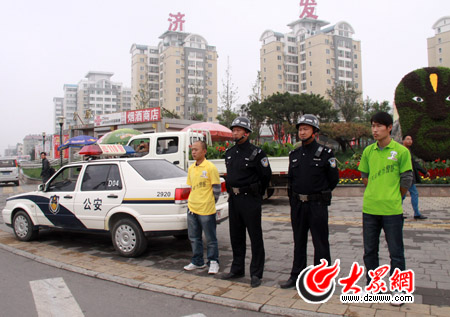 在了解了巡警的工作內容后,4位體驗者被分到三輛巡邏警車內,開始巡邏體驗。劉長東和孫樹明隨巡警大隊三中隊張晉和張濤兩位巡警在濟洛路執勤。