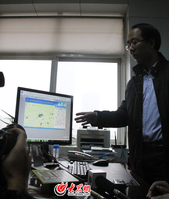 濟南市環境保護監測站大氣監測科科長呂波介紹濟南監測點情況。
