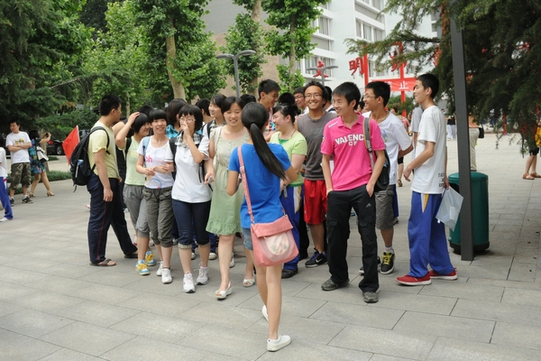 “出來了!出來了!”隨著考試結束鈴聲的響起,有不少考生開始往校門口走來。在外等候的人群中也響起陣陣掌聲,向剛剛走出“戰(zhàn)場”的考生們致敬。