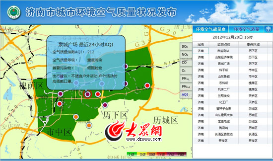 濟南公布PM2.5首日:15個監測點8個“重度污染”