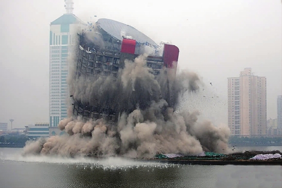 2010年2月,南昌的著名地標五湖大酒店被整體爆破,建成僅13年;