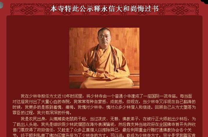 少林寺網站被黑 方丈釋永信稱是鞭策