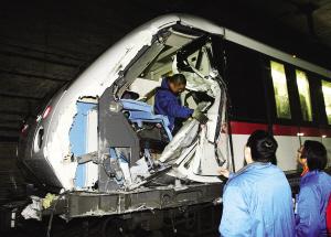 上海地鐵發生碰撞列車車頭被撞出大洞