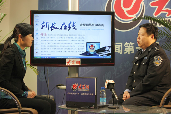 11月30日(周二)上午9:30,濟(jì)南市公安局長(zhǎng)清分局大學(xué)路派出所所長(zhǎng)靳宗兵做客大眾網(wǎng)、生活日?qǐng)?bào)、濟(jì)南市公安局聯(lián)合舉辦的“所長(zhǎng)在線”互動(dòng)訪談欄目,就大家所關(guān)注的問(wèn)題進(jìn)行互動(dòng)交流,并為市民和大學(xué)城的學(xué)生們現(xiàn)場(chǎng)解答疑問(wèn)、解決實(shí)際問(wèn)題。