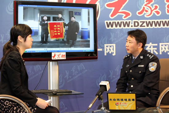 濟(jì)南市公安局天橋分局工人新村北村派出所所長(zhǎng)李忠國(guó)做客“所長(zhǎng)在線”與網(wǎng)友讀者互動(dòng)交流。(曹亮 攝)