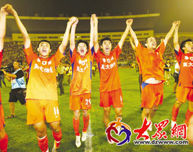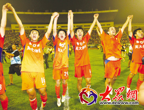 大眾日報濟南8月27日訊 今晚,山東省體育中心體育場煙花飛舞,彩旗飄揚,鑼鼓喧天,歡聲一片。憑借韓鵬開場后不久的一粒頭球,山東魯能泰山足球隊1:0戰(zhàn)勝北京國安,提前六輪奪得2006賽季中超聯(lián)賽冠軍,這也是繼1999年泰山隊奪得“雙冠王”后,再次問鼎中國足球頂級聯(lián)賽冠軍。喜訊傳來,省委、省政府致電表示祝賀。 賀電說,山東魯能泰山足球俱樂部自1997年成立以來,認(rèn)真貫徹省委、省政府和國家電網(wǎng)公司的工作部署,在省體育局的關(guān)心和山東電力集團公司的領(lǐng)導(dǎo)下,堅持市場化動作、規(guī)范化管理,各方面工作不斷取得新成績。山東魯能泰山足球隊大力發(fā)揚“魯能精神”,刻苦訓(xùn)練,頑強拼搏,先后取得“雙冠王”、“兩冠一亞”的優(yōu)異成績,今年在中超聯(lián)賽中一路領(lǐng)先,提前六輪奮勇奪冠,這是山東足球史上新的重大突破,極大地振奮了全省人民的精神,為山東人民爭了光,贏得了榮譽,為全省經(jīng)濟社會發(fā)展作出了新的貢獻。全省人民祝賀你們,感謝你們! 省委、省政府在賀電中希望足球俱樂部進一步總結(jié)經(jīng)驗,發(fā)揚成績,科學(xué)管理,嚴(yán)格訓(xùn)練,在今后的比賽中取得更加優(yōu)異的成績,為加快全省經(jīng)濟社會發(fā)展,構(gòu)建和諧社會,建設(shè)“大而強、富而美”的社會主義新山東再立新功! 本報濟南8月27日訊 山東魯能泰山隊提前六輪奪得中超聯(lián)賽冠軍后,省委書記、省人大常委會主任張高麗,省委副書記、省長韓寓群親切接見了山東魯能泰山隊全體運動員、教練員。 張高麗、韓寓群等省領(lǐng)導(dǎo)在現(xiàn)場觀看了比賽。比賽一結(jié)束,他們就來到足球場的草坪上,與運動員、教練員和廣大球迷共同慶祝勝利,并與全體運動員、教練員親切握手,代表省委、省政府對魯能泰山提前奪冠表示熱烈祝賀和親切問候。張高麗說,你們在比賽中充分發(fā)揚了團結(jié)協(xié)作、精益求精、頑強拼搏的精神,這種精神必將極大地鼓舞全省人民,在全面落實科學(xué)發(fā)展觀,加快經(jīng)濟社會發(fā)展,構(gòu)建社會主義和諧社會,建設(shè)“大而強、富而美”社會主義新山東的道路上奮勇前進。希望全體運動員、教練員繼續(xù)總結(jié)經(jīng)驗、發(fā)揚光大、再接再厲、爭取新的更大的成績。 省委常委、秘書長楊傳升,省人大常委會副主任邵桂芳、莫振奎,濟南市委副書記、市長鮑志強等參加了接見。 |