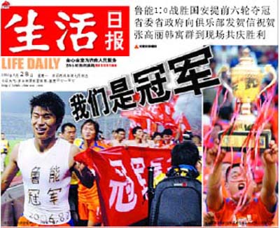魯能1∶0戰(zhàn)勝國安提前六輪奪冠 省委省政府向俱樂部發(fā)賀信祝賀 張高麗韓寓群到現(xiàn)場共慶勝利