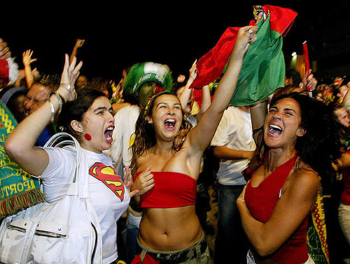 葡萄牙對(duì)俄羅斯即將打響 現(xiàn)場(chǎng)球迷清涼裝扮