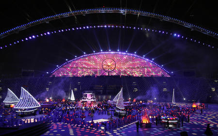 2006多哈亞運會閉幕式將于當(dāng)?shù)貢r間12月15日19時(北京時間12月16日零時)在哈里發(fā)體育場舉行。本屆亞運會開幕式精彩紛呈,而以“一千零一夜”為主題的閉幕式將更為吸引人,其中《東方神韻》“廣州10分鐘”將成為一大亮點。(中體在線 白宇攝) |