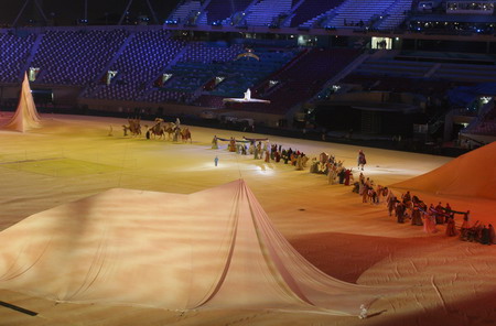 2006多哈亞運會閉幕式將于當地時間12月15日19時(北京時間12月16日零時)在哈里發體育場舉行。本屆亞運會開幕式精彩紛呈,而以“一千零一夜”為主題的閉幕式將更為吸引人,其中《東方神韻》“廣州10分鐘”將成為一大亮點。(中體在線 白宇攝)