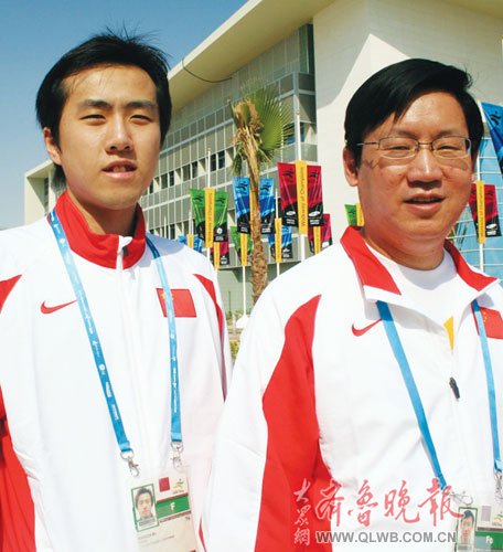 29日上午,在中國體育代表團即將進行升旗儀式時,記者在亞運村找到了中國國際象棋隊的隊員卜祥志和趙雪。
