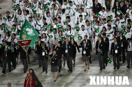 12月1日,第15屆亞運會開幕式在卡塔爾首都多哈哈里發體育場隆重舉行。這是中國澳門代表團入場。 新華社記者李岳攝