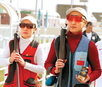 圖為女子飛碟選手朱美(左)、陳麗。新華社記者 格桑達瓦/攝