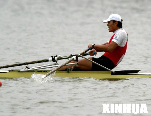 10月14日,河北選手崔永輝在十運會賽艇比賽男子單人雙槳的決賽中獲得冠軍。