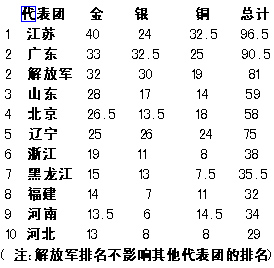 十運會總獎牌榜(截至10月18日0:00)