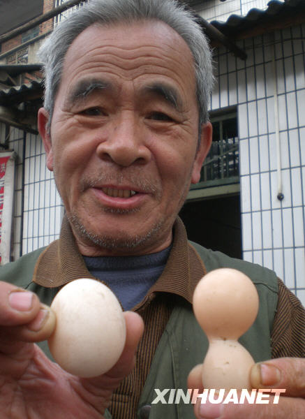 柳州市動物疫病預防控制中心獸醫(yī)稱,母雞產下“葫蘆蛋”實屬罕見,原因很有可能與母雞的內分泌失調有關。新華社發(fā)(李書厚 攝)
