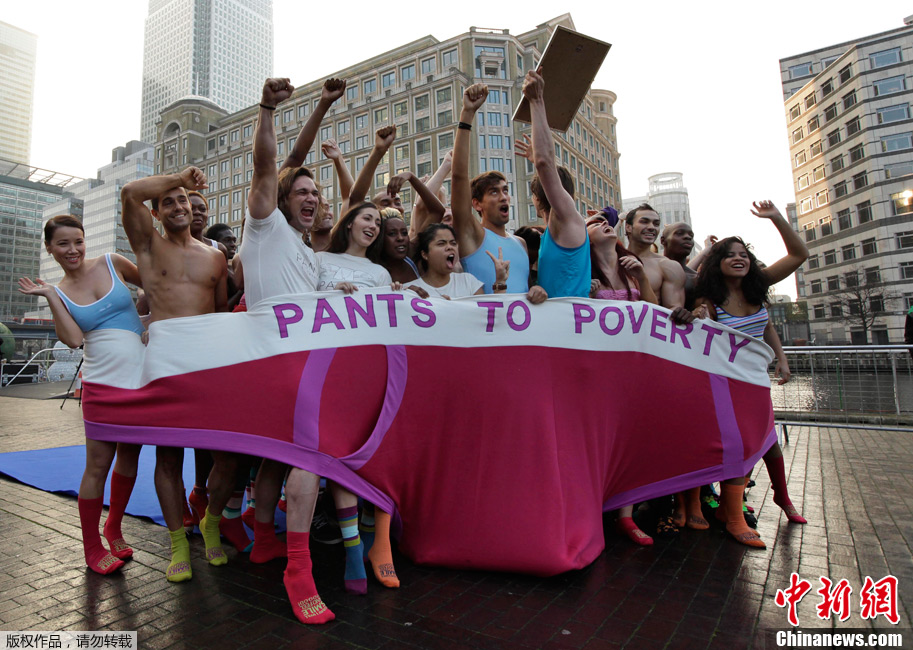 11月17日,在英國(guó)首都倫敦金融區(qū),57人同穿一條5米寬的超大號(hào)內(nèi)褲,創(chuàng)造了最多人同穿一條內(nèi)褲的世界紀(jì)錄。當(dāng)日是第七個(gè)吉尼斯世界紀(jì)錄日,據(jù)估計(jì)世界各地至少有2萬(wàn)人爭(zhēng)相嘗試打破各種稀奇古怪的吉尼斯紀(jì)錄。