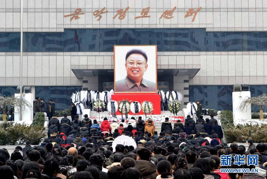 朝中社12月22日提供的照片顯示,平壤市民、人民軍戰士、青年學生和少年兒童21日繼續到各個吊唁場所對金正日畫像獻花默哀。朝鮮最高領導人金正日17日逝世,朝鮮全國哀悼期將持續到29日。 新華社/朝中社
