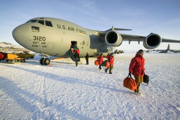南極洲羅斯島的美國麥克默多科考站,身穿毛皮風雪大衣的乘客走下C-17運輸機。這里的海冰機場是7座最讓人恐懼的機場之一,即使在條件最好的情況下,這種簡易機場也處于不穩定狀態,給起降帶來不小難度。為麥克默多站運送物資補給的飛機往往選擇在春季起飛,此時的天氣環境比較適于飛機起降。12月,海冰開始走向脆弱,這個機場不復存在,飛機利用羅斯冰架上的另一條冰跑道起降。在氣溫寒冷的月份,這條跑道仍可以使用。
