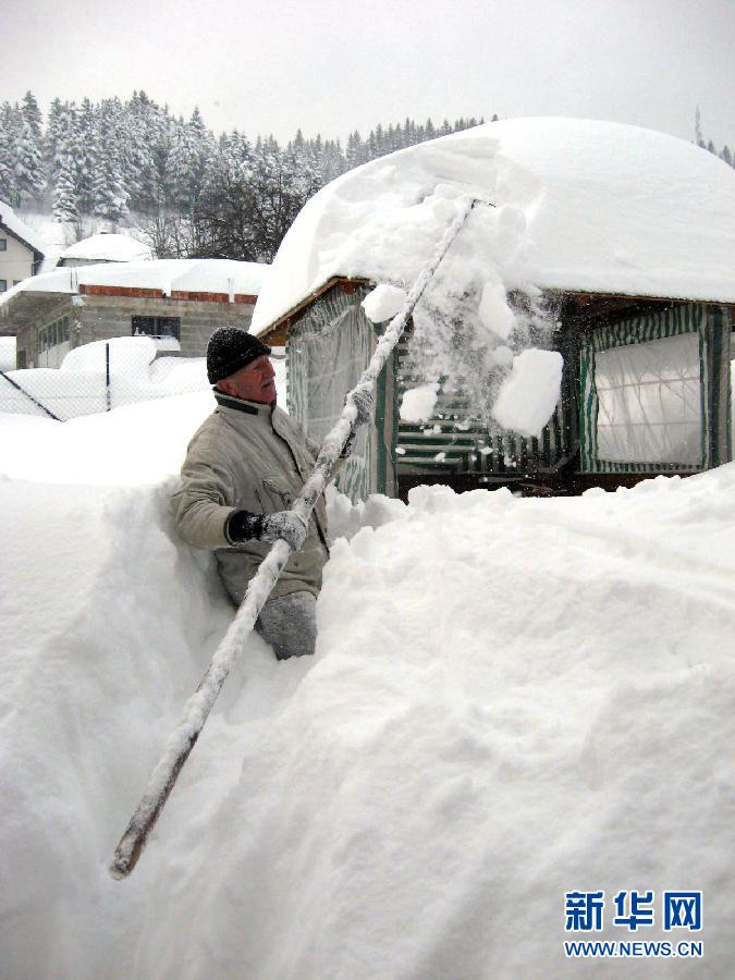 據塞爾維亞國家電視臺28日報道,因自24日起持續多日大雪不斷,塞國內13個地區已宣布進入緊急狀態。 新華社發