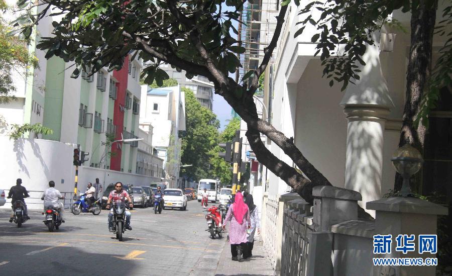 這是2月8日拍攝的馬爾代夫首都馬累街頭一景。