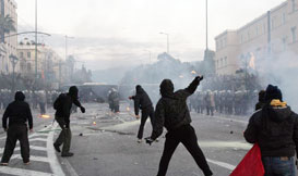 希臘雅典民眾與警...