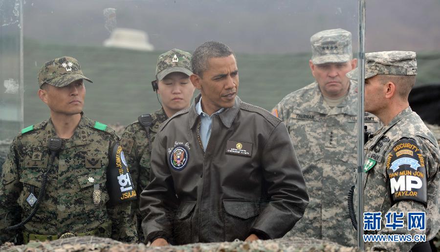 3月25日,美國總統奧巴馬在板門店非軍事區訪問。當日,美國總統奧巴馬抵達韓國首爾后訪問了板門店非軍事區。 新華社/韓聯社
