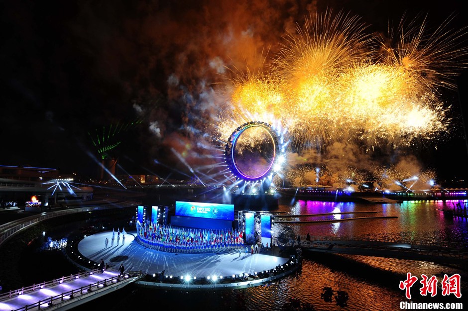 5月11日晚間,2012韓國麗水世博會開幕式在世博園區隆重舉行。韓國總統李明博宣布世博會開幕。本次世博會為期93天,有105個國家和地區,以及10個國際組織參展。中新社發 侯宇 攝