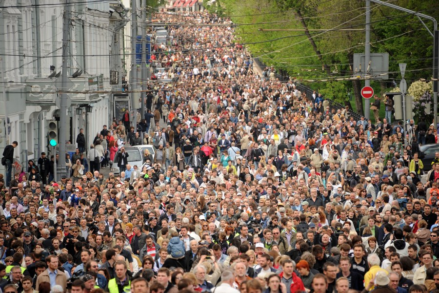 2012年5月13日,俄羅斯莫斯科,數千名反對派支持者與著名的俄羅斯詩人、作家、音樂人、記者參加“控制步行”(Control Walk)游行,反對普京就任總統。(國際在線)