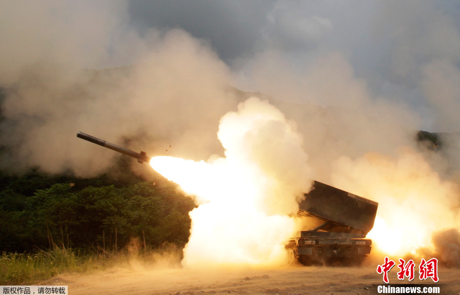 當地時間2012年6月12日,韓國鐵原郡,韓美舉行聯合炮兵實彈演習。