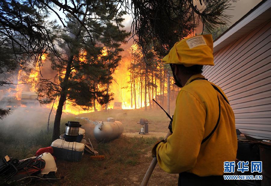 6月26日,在美國蒙大拿州朗達普南部,消防員在為一處民宅滅火。目前正值美國山林火災多發期。除蒙大拿州山火外,美國科羅拉多州、猶他州、懷俄明州、新墨西哥州、亞利桑那州和加利福尼亞州的山林也正遭受火災。 新華社/美聯
