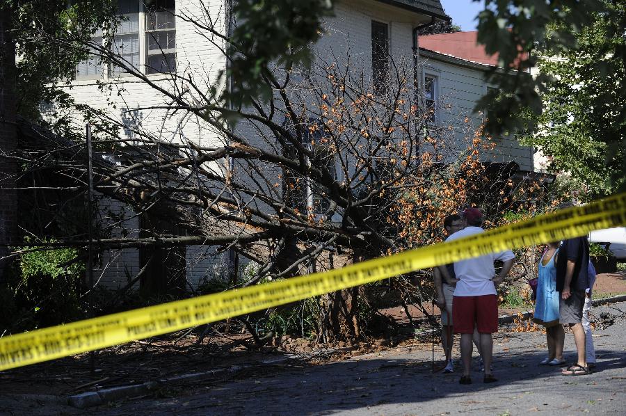 新華社照片,華盛頓,2012年6月30日 (國際)(4)美國東部遭受暴風雨襲擊 6月30日,在美國首都華盛頓,居民查看被風吹倒的大樹。 包括首都華盛頓在內的美國東部多個地區29日晚至30日早遭遇暴風雨天氣,造成3人死亡和大面積斷電,預計超過200萬人受到影響。新華社記者張軍攝