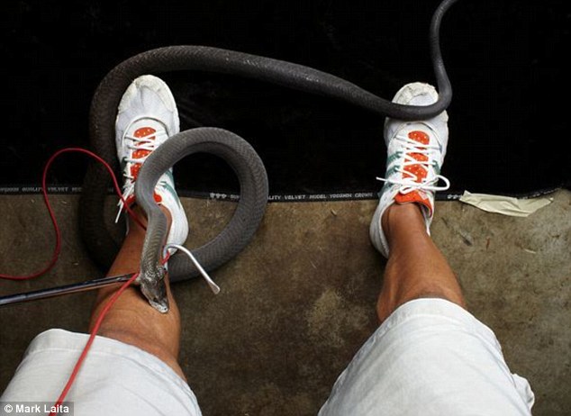 萊塔拍下自己腿部被致命毒蛇啃咬的瞬間,然而當時他本人卻渾然不知。