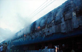 印度南部列車起火...