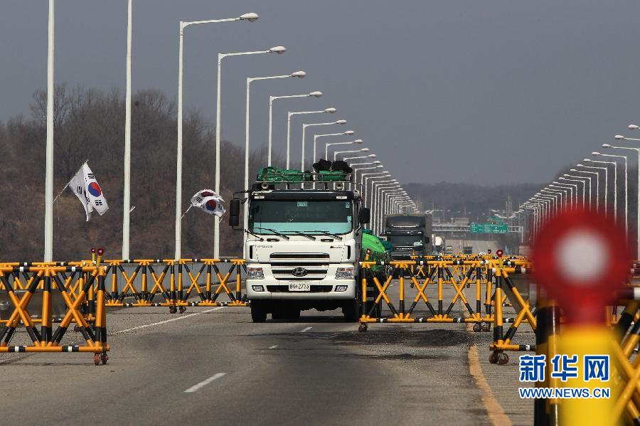 4月3日,在位于韓國京畿道坡州的南北出入境事務所停車場,無法進入開城工業園區的貨車返回韓國。