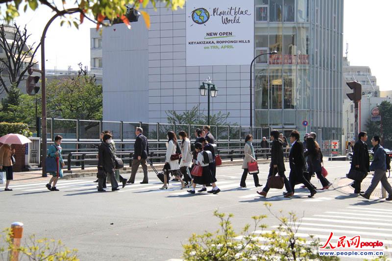 4月11日,日本街頭上,人們平靜的走著。(本網(wǎng)駐日本記者趙松攝)