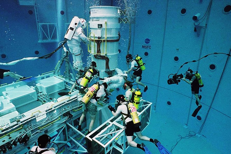 英國(guó)《每日郵報(bào)》6月4日刊登了一組展示美國(guó)國(guó)家航空航天局(NASA)宇航員正在世界上最大的游泳池內(nèi)艱苦地接受訓(xùn)練的照片。這一由美國(guó)太空總署打造的游泳池實(shí)際是無(wú)重力實(shí)驗(yàn)室(NBL),是為了讓宇航員模擬在失重條件下執(zhí)行任務(wù)。據(jù)報(bào)道,坐落在NASA約翰遜航天中心附近的索尼卡特訓(xùn)練中心的NBL有十個(gè)奧林匹克運(yùn)動(dòng)會(huì)游泳池大,其長(zhǎng)200多英尺(約合61米),深40英尺(約合12.2米),相當(dāng)于四輛雙層巴士疊放的高度,可容納620萬(wàn)加侖的水(約合2821萬(wàn)升)。泳池四周的墻壁厚6英尺(約合1.83米)。自20世紀(jì)60年代中期起,中性懸浮就是程序測(cè)試、硬件研發(fā)和宇航員訓(xùn)練的利器,因其能幫助宇航員克服在失重狀況下操控設(shè)備和太空行走的困難。目前,已有數(shù)百名宇航員利用這一尖端訓(xùn)練設(shè)備預(yù)先完成即將到來(lái)的太空任務(wù)。圖片來(lái)源:環(huán)球網(wǎng)