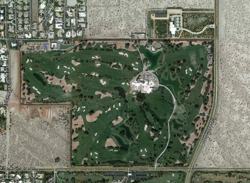 安納伯格莊園位于加利福尼亞州蘭喬米拉日地區(qū),占地200英畝,地處沙漠邊緣,周邊有許多沙地。莊園內有高爾夫球場、人造湖泊、泳池等。在莊園北側是游客中心,內有美麗的花園,占地15英畝。圖片來源:谷歌衛(wèi)星地圖