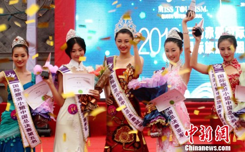 圖為2012國際旅游小姐中國區總決賽獲獎前5名佳麗。中新社發錢興強 攝