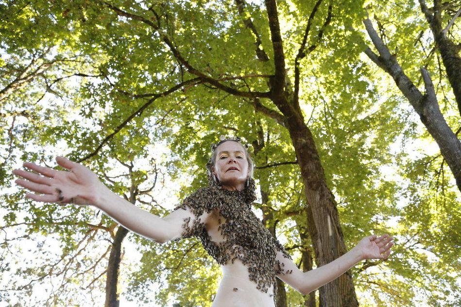 4月25日消息(具體拍攝時間不詳),美國俄勒岡州科瓦利斯,薩拉·瑪佩里在一萬多只蜜蜂的“簇擁”下翩翩起舞。這位44歲的藝術家從2001年開始穿著這種“蜜蜂上衣”跳舞。她使用一種特殊的信息素油,能散發出相當于100只蜂王的氣味,引來成千上萬的蜜蜂爬在她裸露的身上,并持續大約兩個小時。這期間她可以跳舞、喝茶、靜坐,蜜蜂會蜇得她很疼,但薩拉認為這也是一種治療。