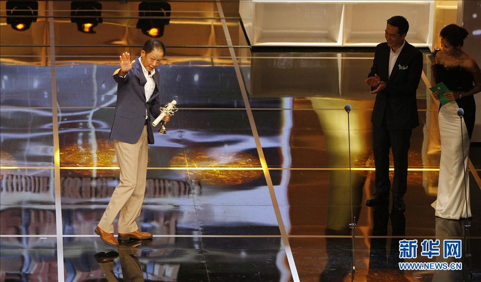 6月13日,在上海東方藝術中心舉行的第20屆上海電視節閉幕式暨白玉蘭獎頒獎典禮上,演員王志文(左)在臺上領取最佳男演員獎。王志文憑借在電視劇《大丈夫》中的表演獲獎。 當日,第20屆上海電視節閉幕式暨白玉蘭獎頒獎典禮在上海舉行。新華社記者 方喆 攝