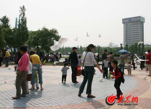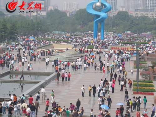 1日,濟南泉城廣場游人如織