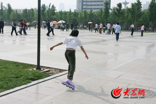 在泉城廣場玩滑輪的少女